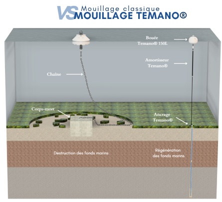 Temano® diseña y fabrica sistemas de fondeo completos en Bretaña, diseñados para proteger el lecho marino al tiempo que garantizan fiabilidad y durabilidad.